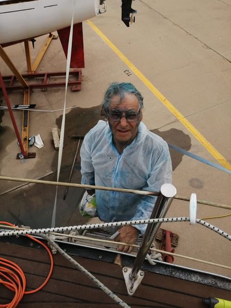 Jobs to do included fitting the new propeller we had brought out on the flight, mending the dinghy, antifouling the boat (last done in Cascais Jan 2021) and building the fridge.