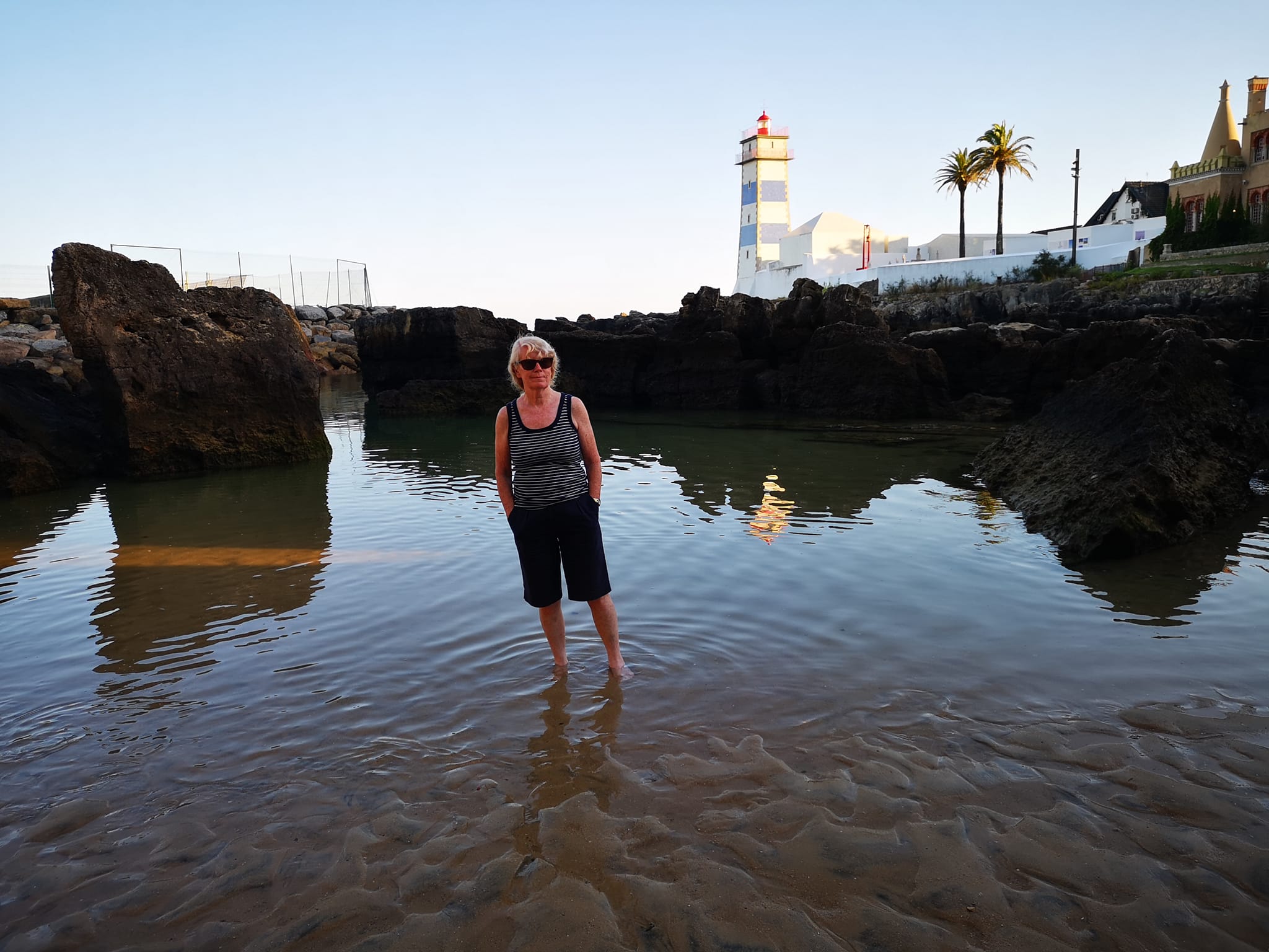 After our appointment, we went down to the marine and to the beach at Santa Marta for a paddle. It was great to be back in Cascais, albeit only briefly. We went to the marina and met Harris Hammer, a yoga instructor and general guru who was living on Daydreamer, our old friend Luis Oliveira’s boat. Sadly Luis was away, but we had a meal and drinks later with Harris, and I agreed to create a website for his business for a modest sum which covered most of the cost of our trip.