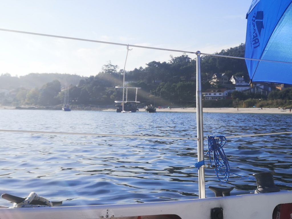 12.5nm to entrance to Ria Muros. As we were a fair way out to see I decided to clean our oily bilge sump, so mixed up a generous portion of dishwashing liquid and water, poured it in and left it for a while. The bilge pump blew a fuse (again) though, so I had to sponge it all out😒
