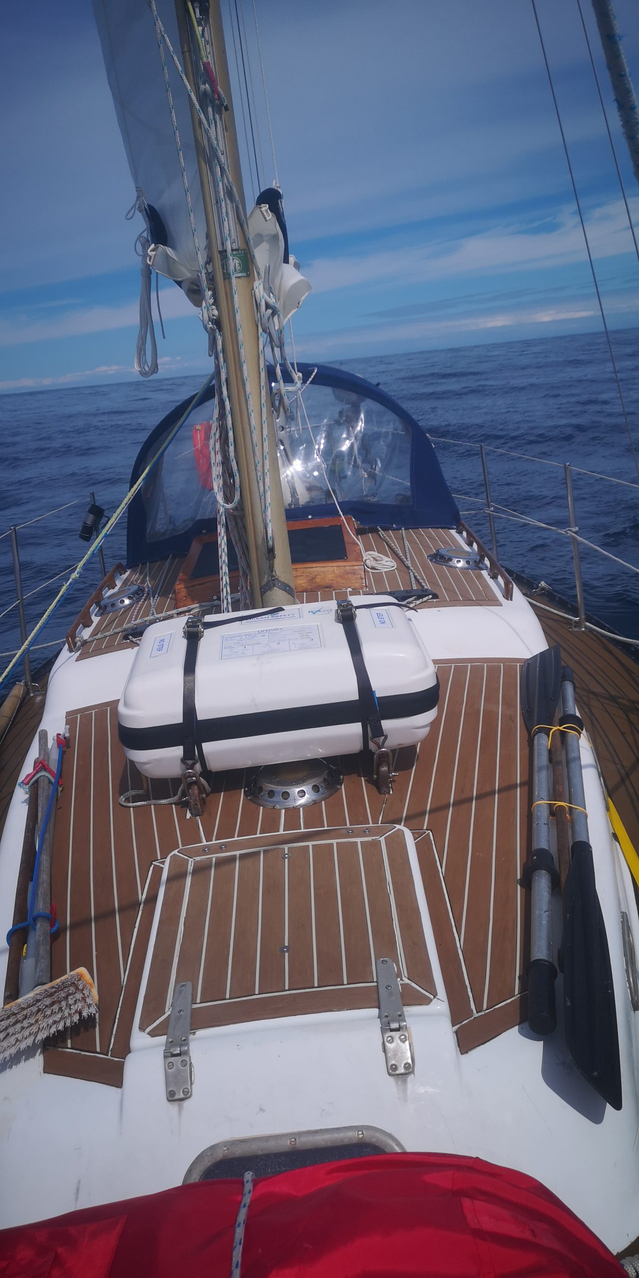 14.30 Dprop main. Put a reefed genoa out sheeted in hard to dampen rolling.