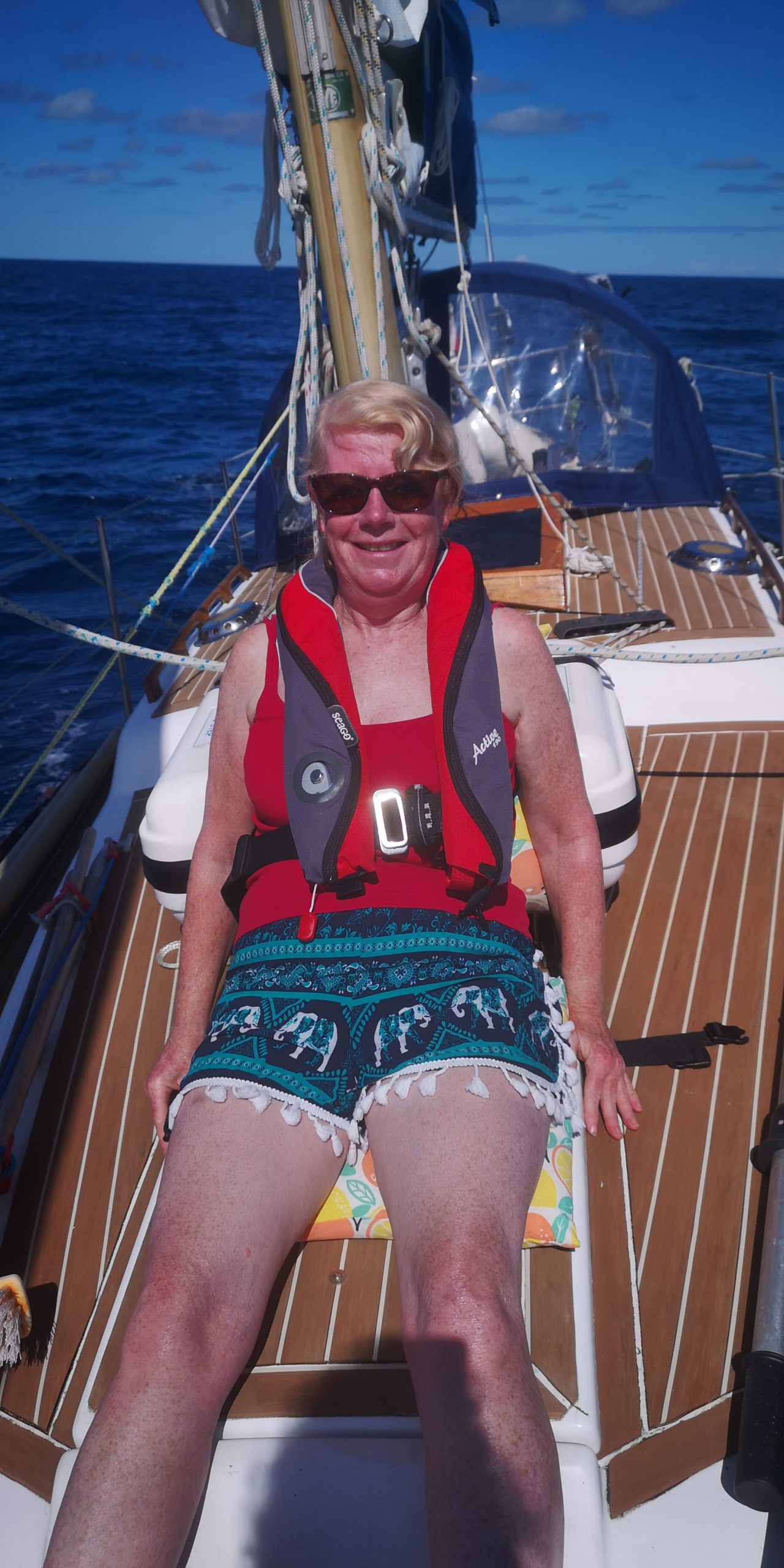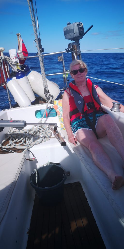 Charging along at five and a half knots, so selfishly cut a few revs for a quieter ride on my off-watch, which I chose to spend in the forepeak as it is so much quieter than the quarterberth with rhe engine on. Managed a couple of hours, totally relaxed in these conditions with Catherine on watch.