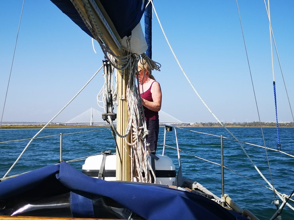 Jobs to do included fitting the new propeller we had brought out on the flight, mending the dinghy, antifouling the boat (last done in Cascais Jan 2021) and building the fridge.