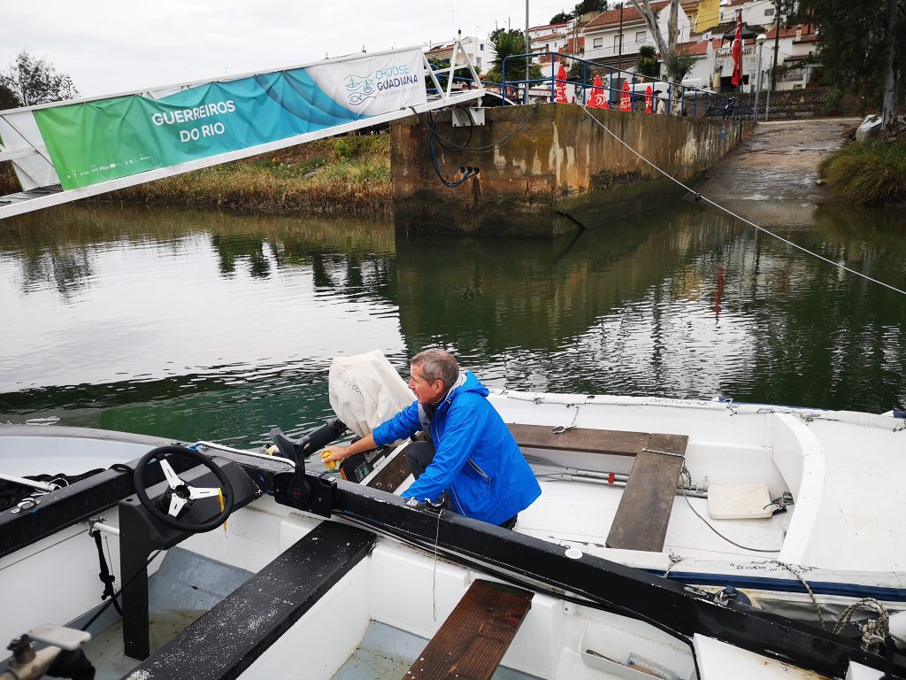 Bureaucracy satisfied, we set about getting the boat ready for launch. I bought some Portuguese antifoul (Titan) and got absolutely filthy giving the hull below the waterline a cursory dry sanding before application. I was moderately pleased with the post-application result. The propellor was successfully installed and we even managed to get the locking bolt through the same hole Joao had originally made in the shaft.