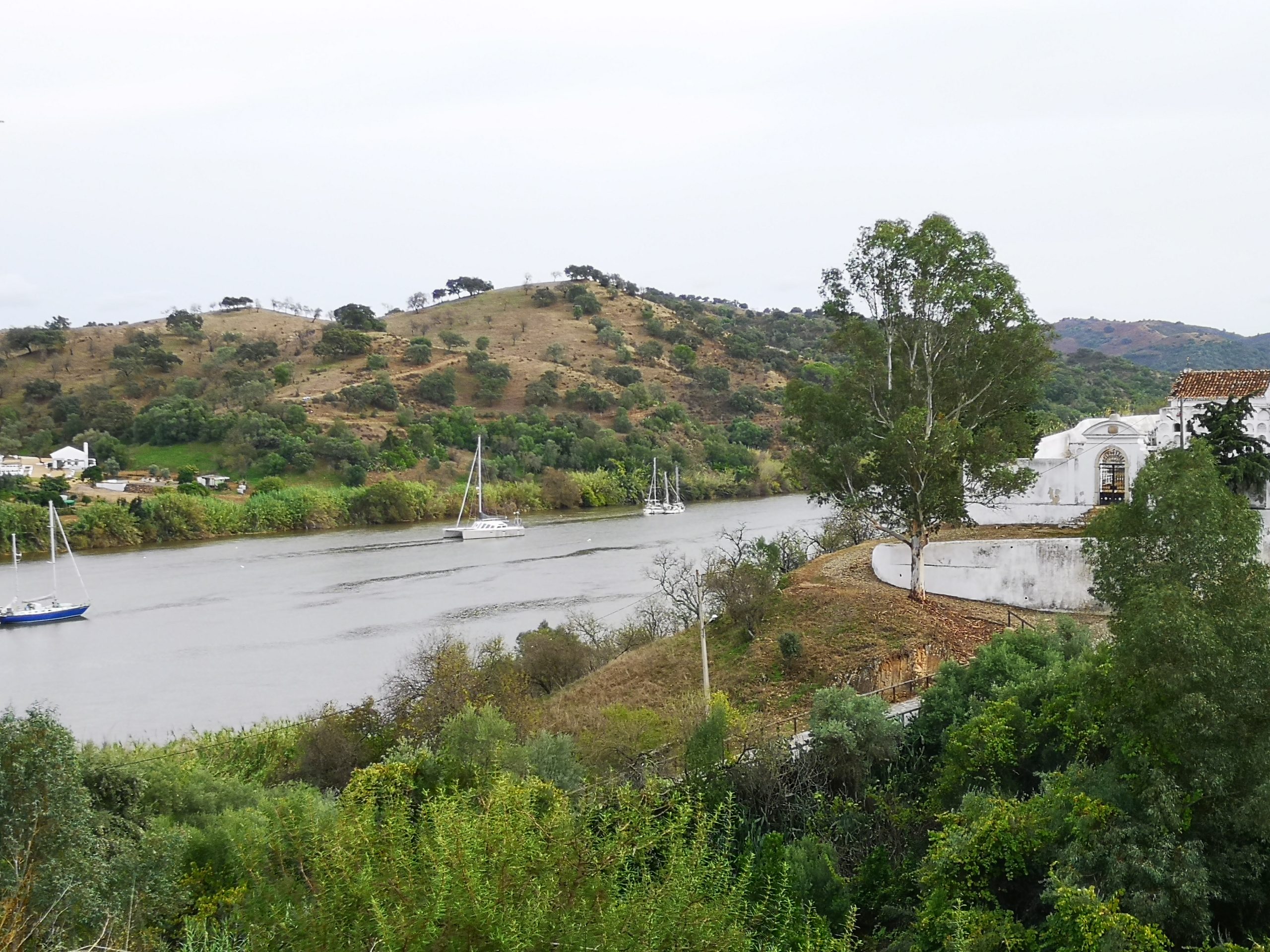 Through the Canal de Sagres, a passage only 200m wide in places between some scary looking rocks. The general sense of alarm is only heightened by the large trawlers bearing down on us from astern and passing metres away.