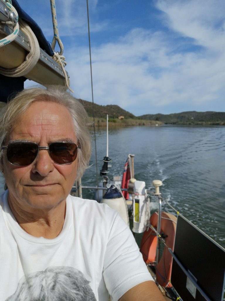After our appointment, we went down to the marine and to the beach at Santa Marta for a paddle. It was great to be back in Cascais, albeit only briefly. We went to the marina and met Harris Hammer, a yoga instructor and general guru who was living on Daydreamer, our old friend Luis Oliveira’s boat. Sadly Luis was away, but we had a meal and drinks later with Harris, and I agreed to create a website for his business for a modest sum which covered most of the cost of our trip.