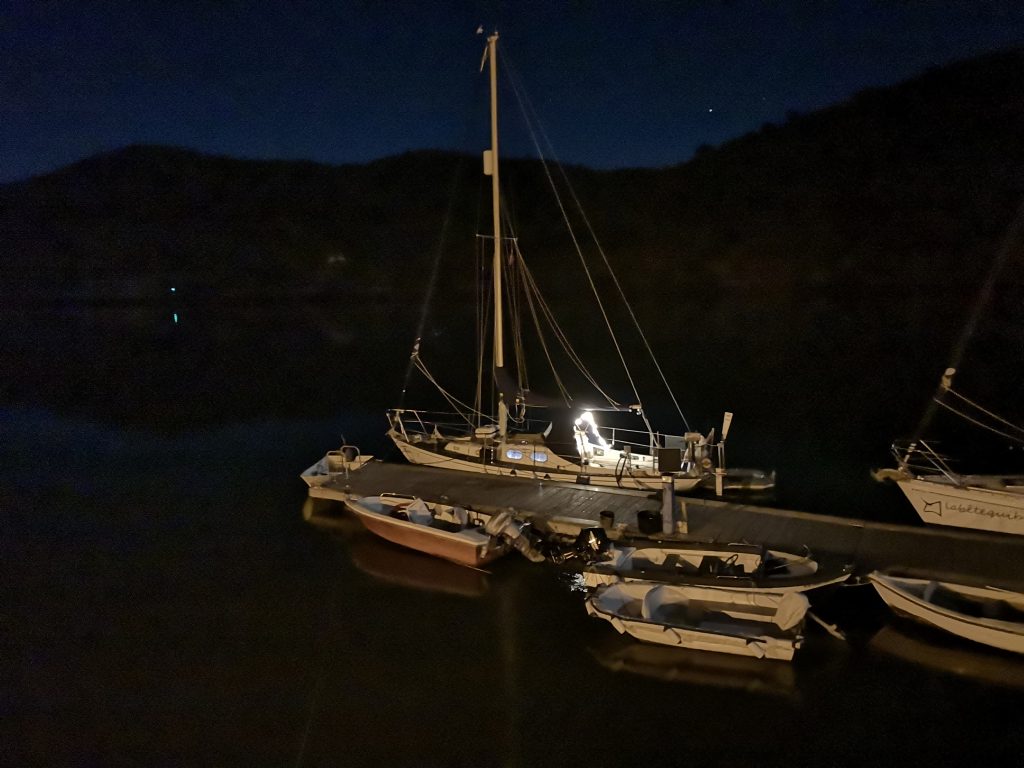 Avy-J is currently stuck in a Spanish anchorage anchored in water deeper than I would have liked, with a boat that came in and anchored close-ish downwind of us just before sunset – – and the anchor alarm goes off at four in the morning.