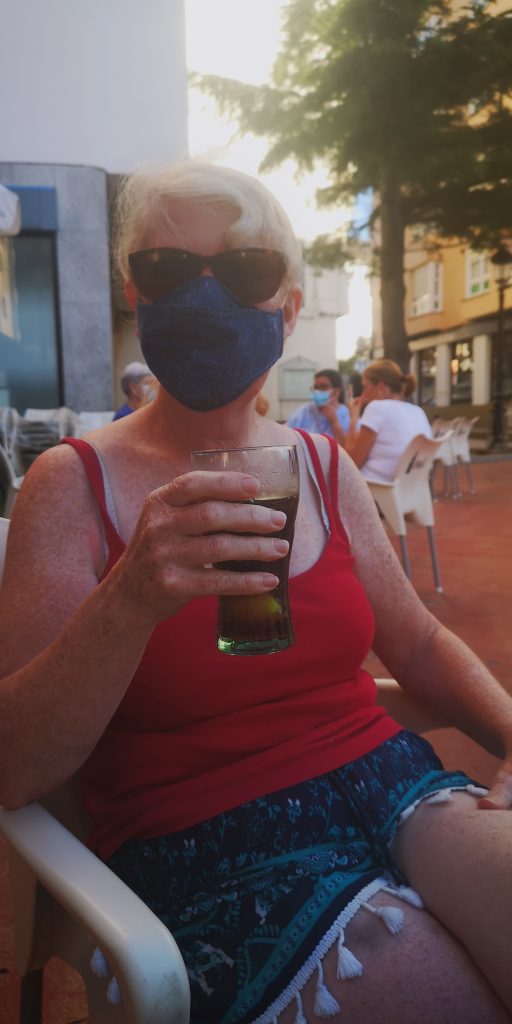 Nick thought it was ok, but went off again at 4, we were dragging, sleepless night, l lay down for a couple of hours, didn’t sleep much. Up at nine to raise anchor and cross over to marina, both shattered. Motored round to Vilanova marina, Nick not happy with marina, don’t give key to get back onto pontoons, have to wait for guy to open gate, a guard dog runs loose in the grounds at night, no one speaks a word of English, so Nick reckons he will not get help with boat repairs. Supermarket 1km away, laundry not that close to marina, all shut Sunday. Day picked up though, went to lovely little beach just round from marina, had lunch of muscles, bread, and beer in a restaurant opposite beach first, went to beach, swimming in the very cold water was such a relief as it was unbearably hot (37°), water was heaven. Went back to marina for showers, went for a walk, and realised this was a lovely little town, lot of people about, but not over crowded. Finished up evening with another meal out, shrimps, tortia, pimentos de padron, bread, and beer. Halliard kept me awake until 3am, sorted it myself as Nick sound asleep.
