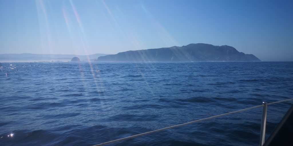 Recovered our anchor and motored out of the ria, watching our position on the chart carefully to avoid some nasty pinnacle rocks guarding the Western corner of the entrance.