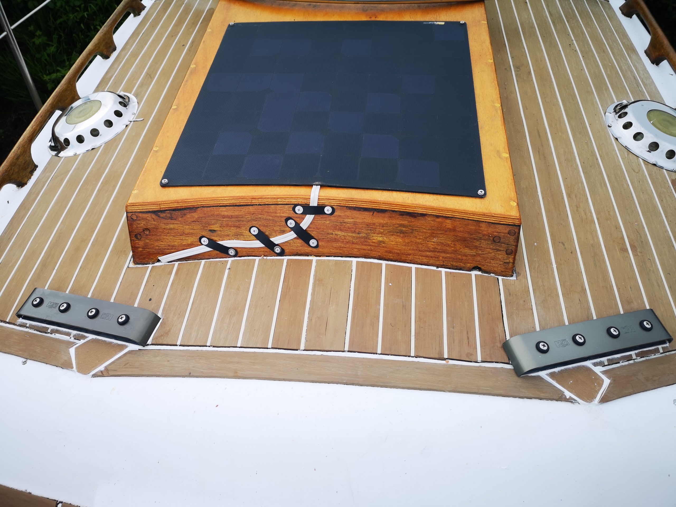 • Walk-on 50W black flat solar panel installed on hatch garage