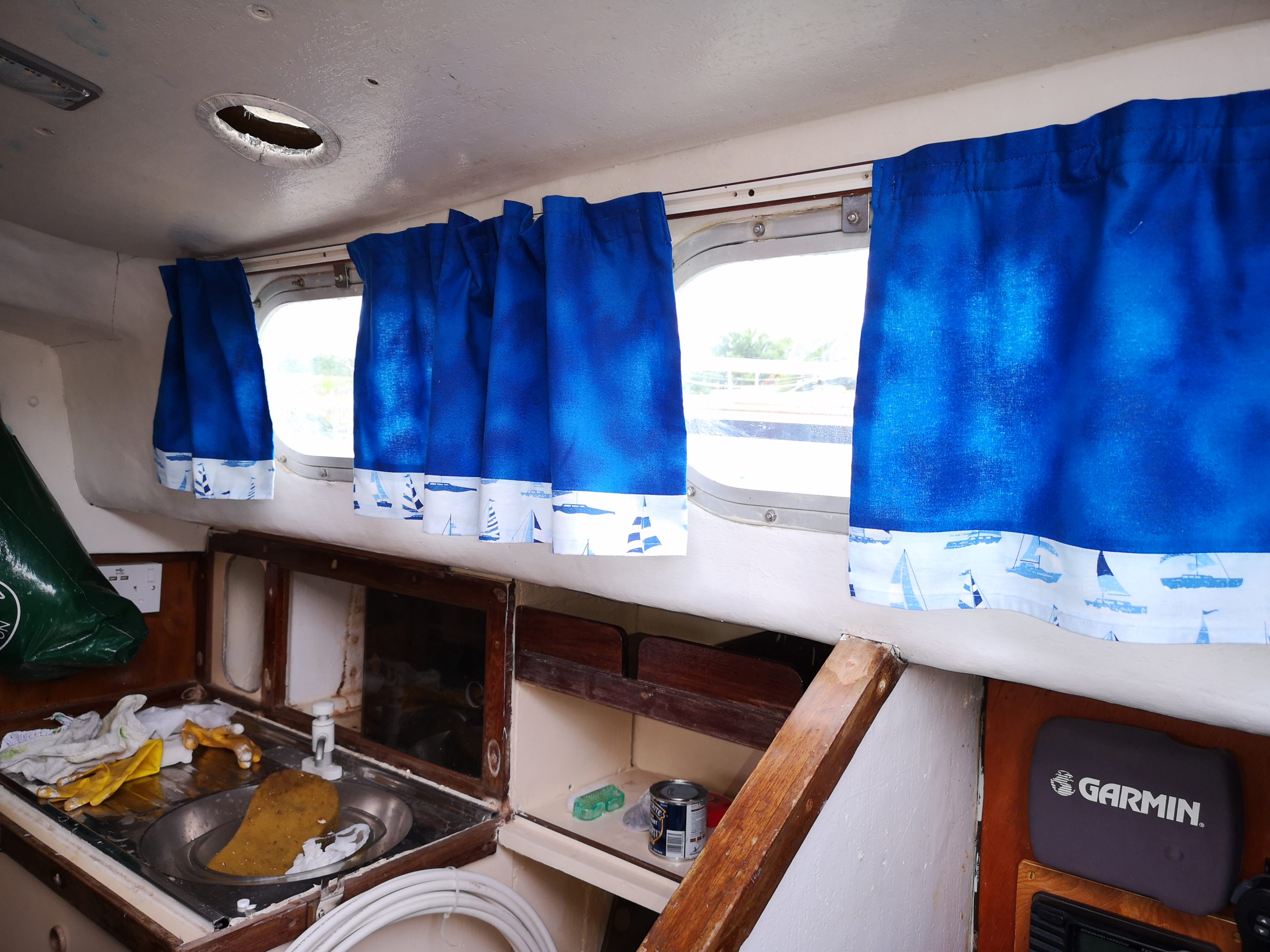 • Quarterberths, lockers, gally area repainted in Heirloom White